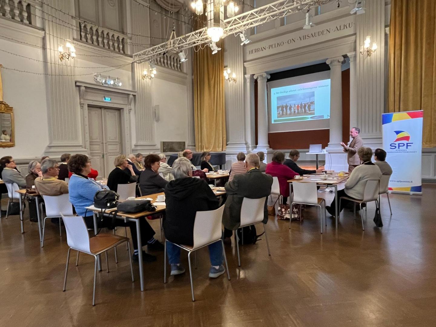 Jens Berg föreläste i en timme om trenderna som påverkar det framtida medlemsskapet. Han talade om 10 punkter som kan vara bra att ha koll på när huvudstadsregionens föreningar funderar på utmaningar och de förändringarna som behövs när man funderar på framtiden.